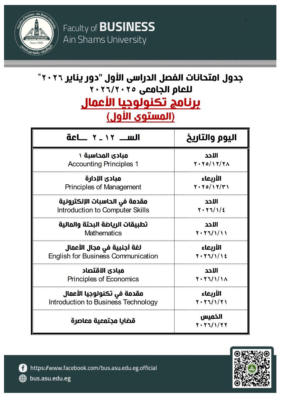 تنويه مهم لطلبة برنامج تكنولوجيا الأعمال – المستوى الأول