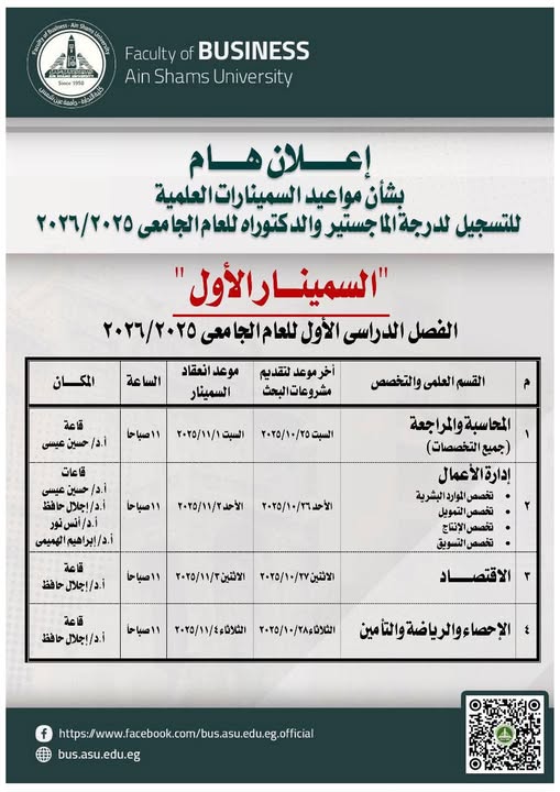 إعلان هام لطلاب كلية التجارة جامعة عين شمس