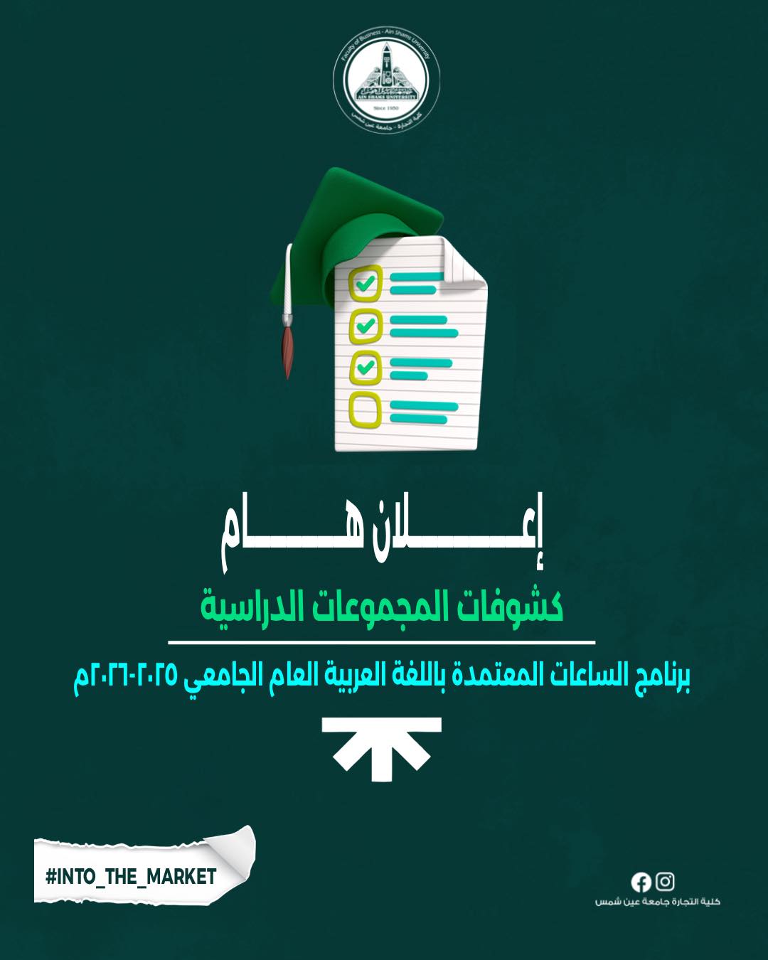 كشوفات المجموعات الدراسية لطلاب برنامج الساعات المعتمدة باللغة العربية للعام الجامعي ٢٠٢٥-٢٠٢٦م
